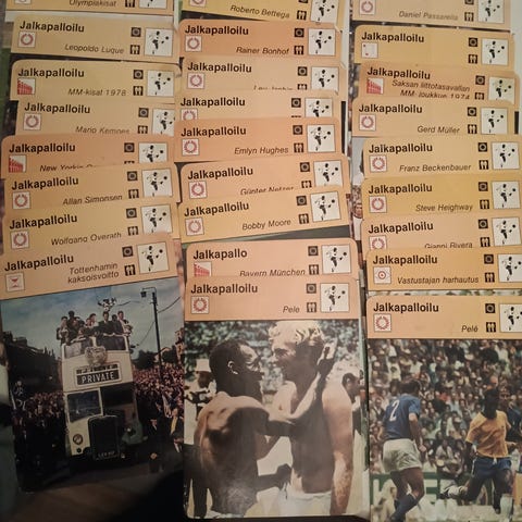 1970-luvun tietokortteja Suomen jalkapallon pelaajista ja joukkueista: