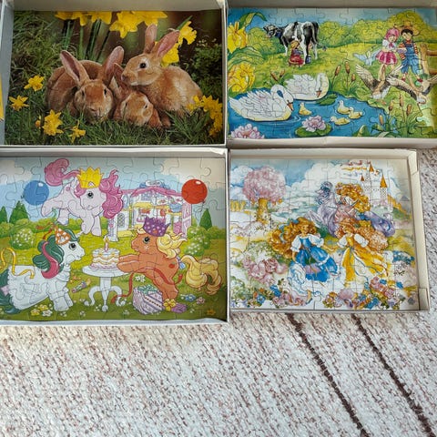 sekä laatikko että palapelien palat erinomaisessa kunnossa