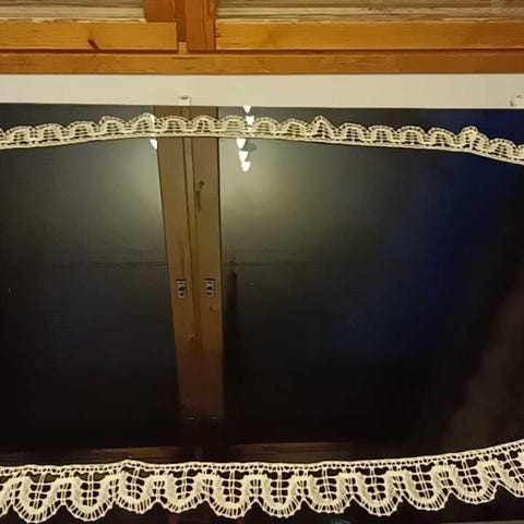 Yksi pitsi on vaaleanpunainen/roosanvärinen ja muut ovat valkoisia.