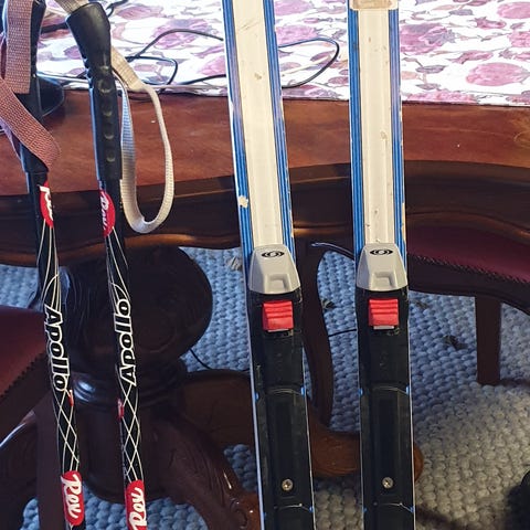 Vähän käytetyt Salomon junior pertsan sukset ja sauvat. Sauvat 135cm sukset 180cm.