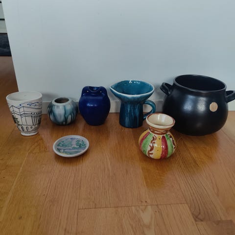 Kupittaan saven Helsinki aiheinen maljakko. Korkeus 10,5cm