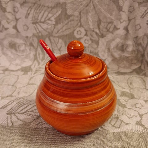 Hyväkuntoinen, lasinen sirotin metallikannella.
