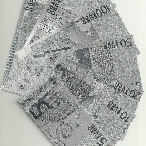 Kullatut eurosetelit 8kpl näköissetelit