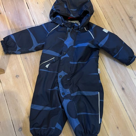 Reimatec Copenhagen toppahaalari, siistissä kunnossa. Polvissa hiukan likaa, voin kyllä pestä ennen kauppoja. Todella hyvä malli pienelle: kaksi vetoketjua jotka ulottuu lahkeisiin saakka (helpoi pukea), iso kaula-aukko (mahtuu ylös asti kiinni), hupun saa kaulalta tarroilla kiinni. Väljä malli, menee vielä pitkälle 80 kokoon.
