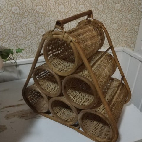 Vintage rottinki lehti tai pullo teline