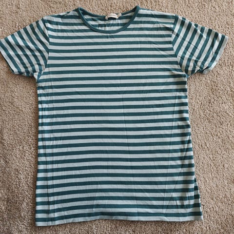 Marimekko raitapaita lyhythihainen 2 kpl. Molemmissa S koko. Kainalon leveys n. 48 cm venyttämättä. Ei kuluneisuutta. Tahrattomat. Värit hyvät. Kappalehinta ilmoitettu.