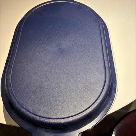 Tupperwaren tarjoilu/säilytysastia, mukana leikkuulauta. Käytön jälkiä jonkin verran.