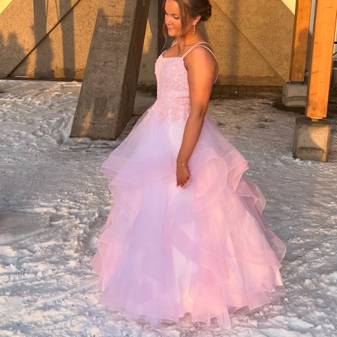 Myydään kerran käytetty hyvässä kunnossa oleva vanhojentanssimekko koossa 46. Takana nyöritykset ja vetoketju. Mekko ollut päällä 160cm tanssijalla korkokenkien kanssa, joten pituusvaraa löytyy. Olkaimet ommeltu lyhyemmiksi, mutta ne saa aukaistua! Mukaan tulee vannehame ja pukupussi. Sovitus onnistuu ja vain nouto!