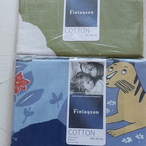 Hyväkuntoinen, ei pesussa haalistunut Lumimuumi tyynyliina.