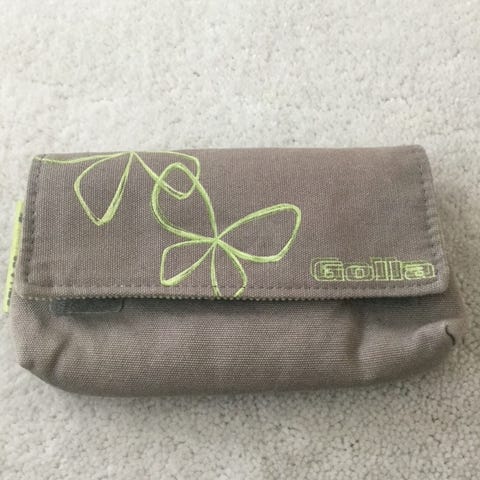 MYYDÄÄN: Sininen pussukka. Kännykkä, muutama kortti ja takana vetoketju kolikoille.