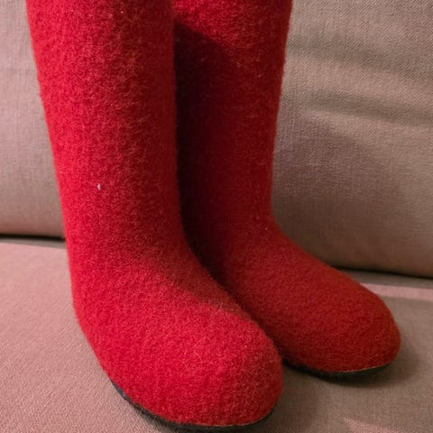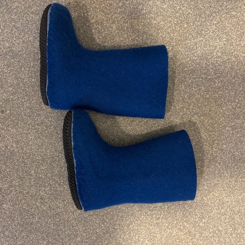 Hyväkuntoiset, kumipohjaiset huopikkaat villapohjallisilla. Toimituskulut ostajalle.