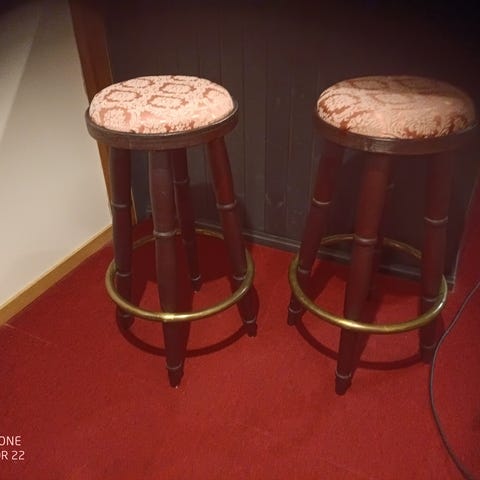 Rottinkiset baarijakkarat (2kpl) vahvoilla metallijaloilla. Istuimen korkeus maasta 62 cm. Erittäin siistit, ovh 220€.