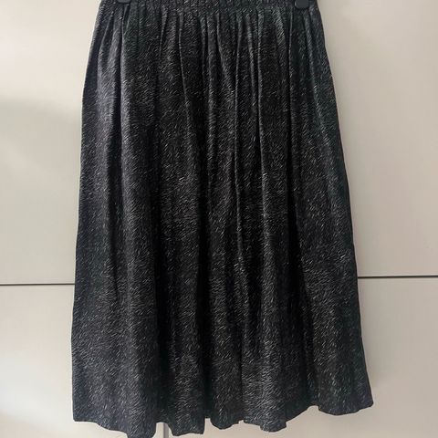 Samujin Kakadu-kuosinen hame, koko 36. Materiaali 85% silkkiä. Kunto erittäin hyvä, lähellä vyötöränauhaa on joitakin langanvetoja, jotka näkyvät kuvissa. HUOM! Vyötärömittaa on kovasti kyselty ja se on 35cm - sitä on kuitenkin varaa levennyttää ompelijalla avaamalla laskoksia.