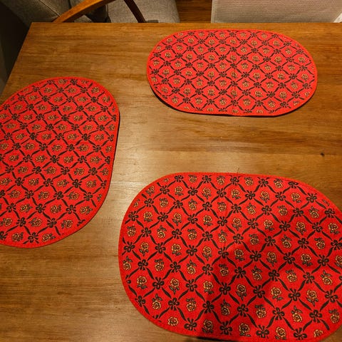 Punaisissa paksua huopaa olevissa joulutableteissa on pieniä tahroja..voi lähteä putsaamalla. Hae pois.