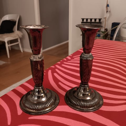 Hopea kynttiläjalat 13.5cm 2kpl ja 7cm 2kpl. Hopeaa