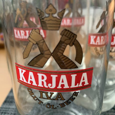 Myydään erittäin hyväkuntoinen alkuperäinen jääkiekko Karjala oluttuoppi tinakannella.