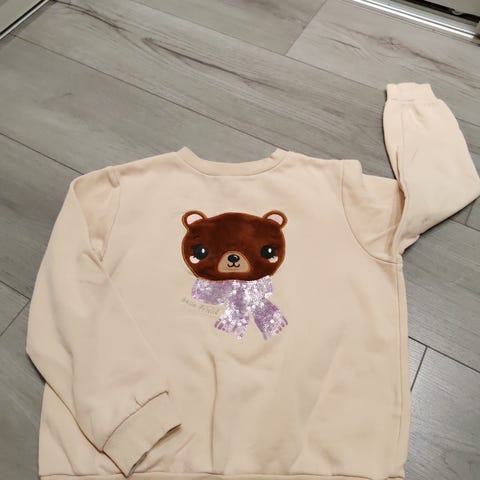 Myydään Joy- merkin suloinen gollegepaita koko 134cm. Väri nude vaaleanpunainen ja kulta. Perhosprintti ja paljetit.