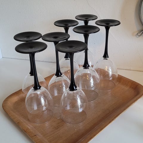 Ranskalaiset Luminarc -viinilasit, läpikuultava roseenpunainen jalka. Hyvässä kunnossa. 8 kpl. Myynnissä kahtena 4 kpl settinä.