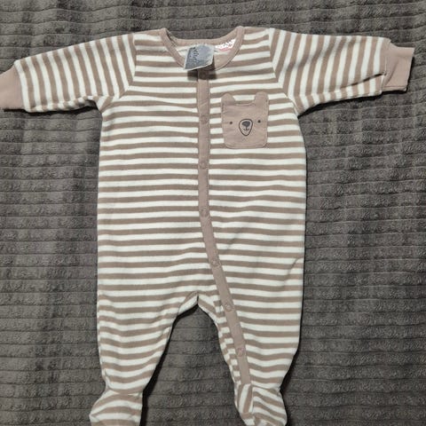 Myydään lähes käyttämätön vauvan fleece- pyjama. Koko 3-6 kk.