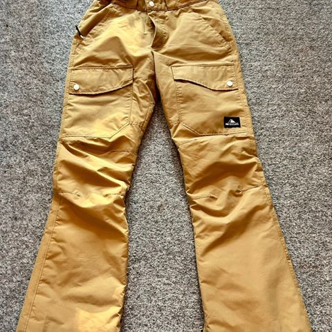 Veden ja tuulen pitävät housut. Lahkeissa lumiesteet. Taskuissa vetoketjunt Housuja voi säätää vyötäröstä tarranauhoin. Pieni repeämä toisessa lahkeessa. Siksi hinta niin edullinen. Voi korjata vaikka tekstiililaastarilla.