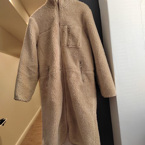Uudenveroinen teddykangas takki. Edessä taskut, kiinnitys tapahtuu hakasella. Hieman oversized mielestäni.