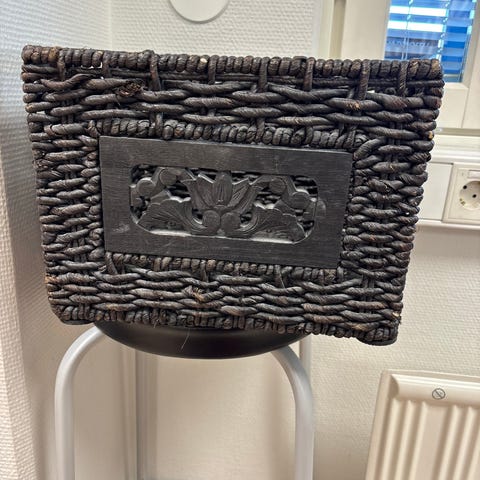 Näppärät ja somat pienet punotut korit vaikkapa hedelmille tai makeisille! Isomman korkeus 9 cm ja halkaisija 19cm, pienemmän korkeus 4,5-6,5cm ja halkaisija 15-18cm. Molemmat yhteishintaan 3€.