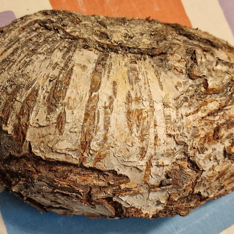 En osaa sanoa tästä juuri mitään. Ehjä ja siisti kaikinpuolin. Lieneekö pahkaa? Visakoivua? Katajaa?