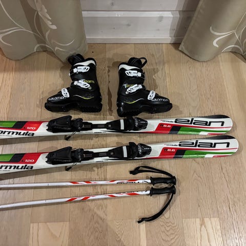 Laskettelupaketti lapselle: sukset 120cm, sauvat 95cm, monot ulkomitta 280mm