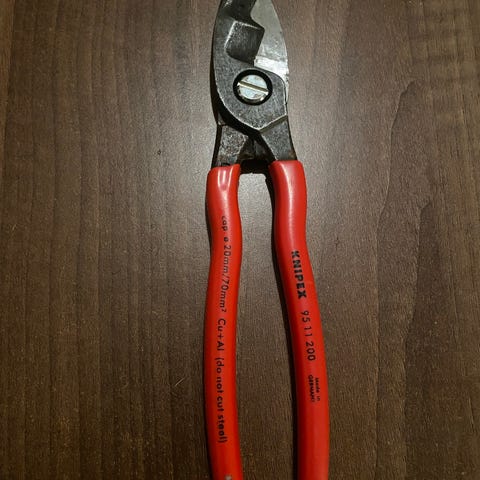 Myydään Knipex merkkinen kaapelikatkaisu leikkuri. Käy kuparin ja alumiinin katkaisuun. Max kaapelin paksuus 27 mm/ 150 neliötä paksulle kaapelille. Pihtien pituus 50 cm. Saksassa tehdyt leikkurit ei Kiinan kopio. Uusien hinta 160 euroa.