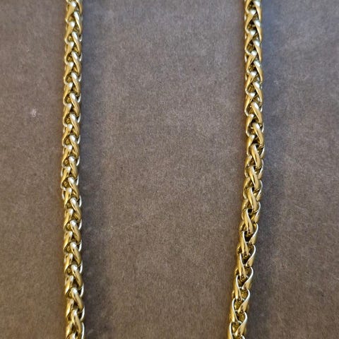 Kullattu muodikas kaulaketju, kimaltelee valossa.