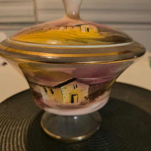 Tsekkiläistä käsityötä. Tekijän puumerkki pohjassa. Poltettu sähköuunissa. Hinta neljän kulhon setille.