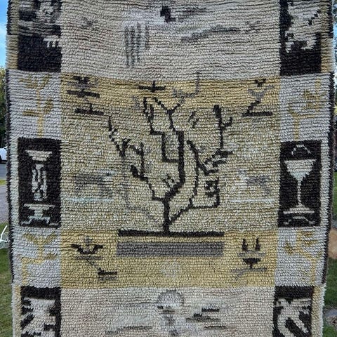 Hyväkuntoinen seinäryijy. Puutanko mukaan jonka avulla seinälle ripustaminen onnistuu helposti . Jos pitää postittaa niin se pitää jättää pois.