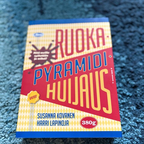 Ruokapyramidihuijaus kertoo, miten ruokateollisuus ja ravitsemustiede ovat kehittyneet ja miten ne vaikuttavat jokapäiväisiin valintoihimme lähes huomaamattamme. Teos selvittää myös, minkälaisista myyteistä suomalainen ruokavalio on koottu. Voiko vähärasvaisten tuotteiden avulla laihduttaa? Kannattaako Avainlippuun ja Sydänmerkkiin luottaa? Onko suomalainen ruoka puhdasta - onko se edes suomalaista?