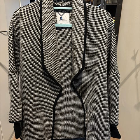 Uusi ihana käyttämätön villatakki. Koko reilu S, menee koosta M. Pituus 85 cm, olkapäästä olkapäähän 50 cm. Kultaista lankaa neuloksessa.