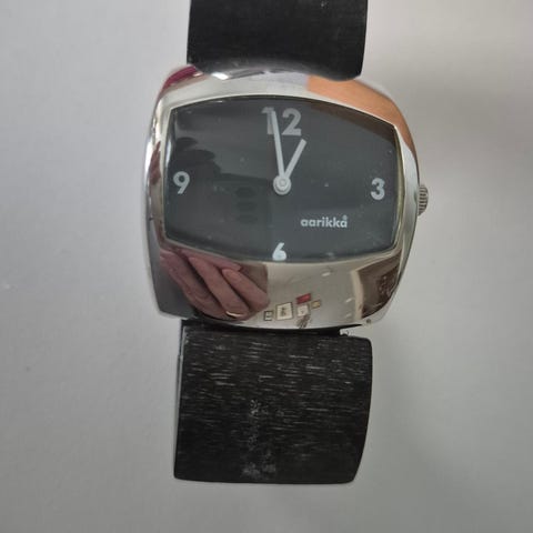 Aarikka kello kuvan mukainen pienempi malli ja toimiva paristo vasta vaihdettu.siistikuntoinen.
