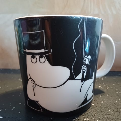 Hyväkuntoinen Muumipappamuki, emalia. Muurlan muki. Tampere. Vain käteismaksu.