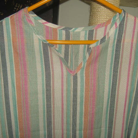 Kainalosta kainaloon 51 cm, vyötärönympärys 102 cm, pituus vyötäröstä helmaan 70 cm.