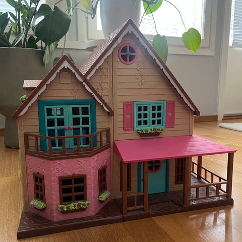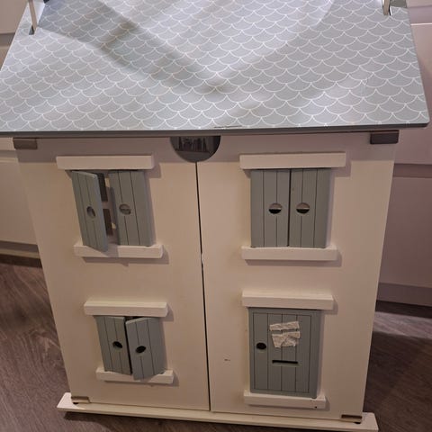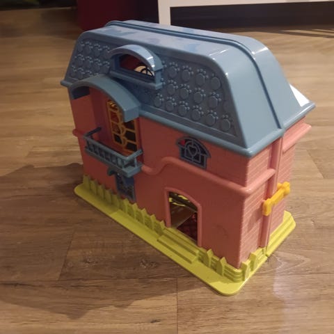 Koti mikä avautuu kokonaan kattoa myöten ja pääset esteettömästi leikkimään. Myös ikkunaluukut avautuvat. Koti on siisti, jota on kiva sisustaa. Koko 71x60x33.