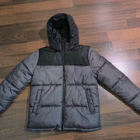 Toppatakki karvakauluksella, koko 164 cm.