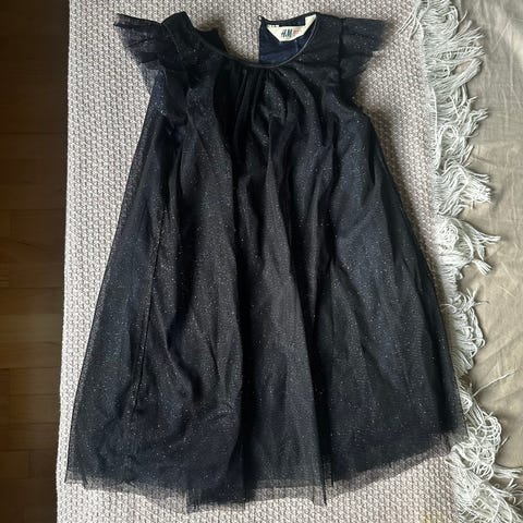 Vaaleanpunainen H&M:n kääntöpaljettimekko. Paljon pidetty, mutta edelleen siisti ja ehjä. Koko 116.