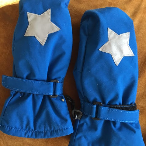 Kuvan uudet Molon lasketteluhanskat. Uudet, laput leikattu pois ja sovitettu käteen niin liian pienet meillä.