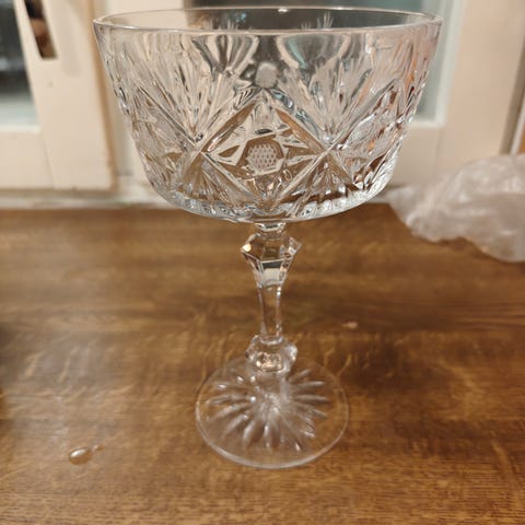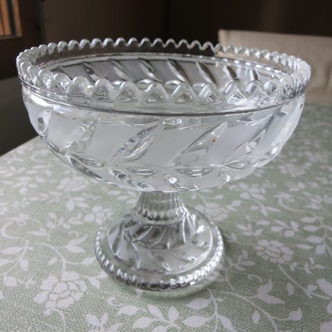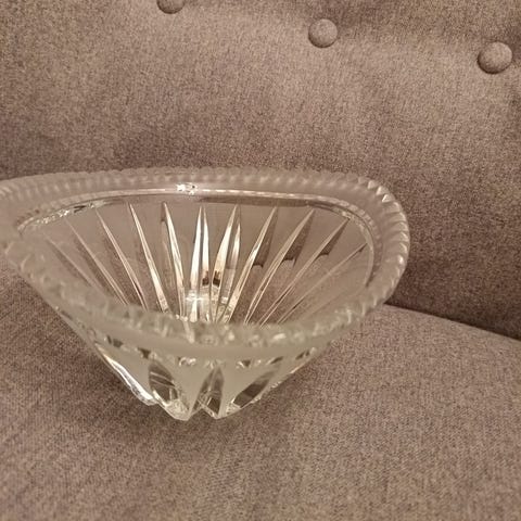 Theresia kristallimalja. Halkaisija 16 cm. Väri on kirkas, vaikka näyttää kuvassa sinertävältä.