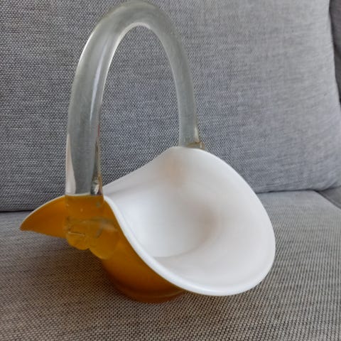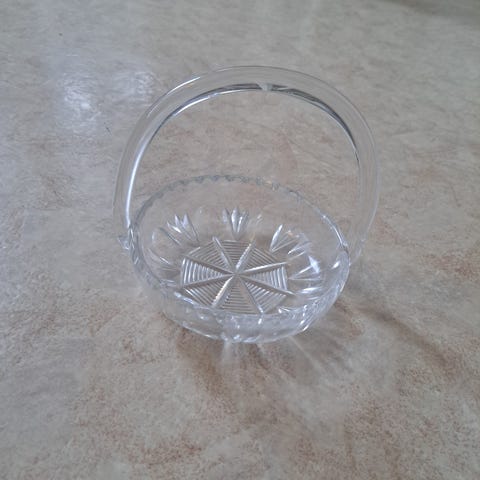 Lasinen kori muovisangalla