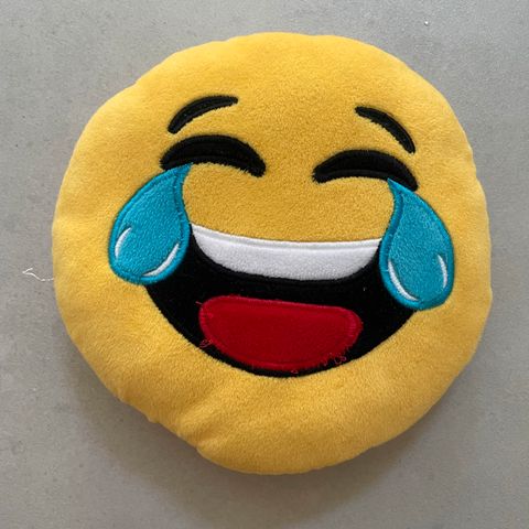 Emojin näköinen lelu / pehmolelu / tyyny, halkaisija noin 26cm.