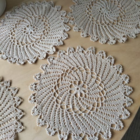 Käsityönä tehdyt pikkuliinat. 100 % puuvillaa. Kalastajalangasta virkattu. Yhteishinta 20 €. Yksittäin 11 €. Toimitus Maaninka-Siilinjärvi-Kuopio / Nouto. Toridiili ja MobilePay käy.