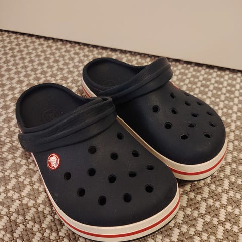 Myydään kelpo kunnossa olevat tummansiniset lasten Crocsit. Koko on J3, joka kokotaulukon mukaan vastaa kokoa 34-35 sekä 21,7cm. Kantaremmit ehjät.