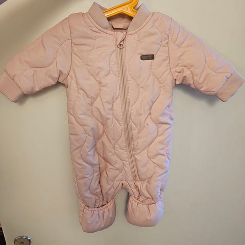 Ihana Name itin vauvan talvihaalari vastasyntyneelle. Koko 50/56, 1-2 kuukautta. Haalean vaaleanpunainen väri. Siisti kunto, pesty hajusteettomalla pesuaineella.
