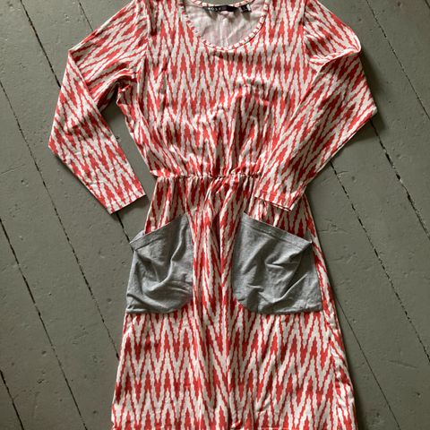 Musta NOSH trikoomekko koko L (42/44). Materiaali on 92% puuvillaa ja 8% elastaania. Selkäpuolella on v-aukko. Mitat:kai-kai 64cm, olla-helma 101cm. Kuminauha 57cm olasta. Väri on aavistuksen haalistunut. Täysin ehjässä kunnossa.