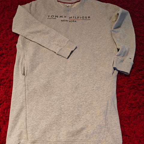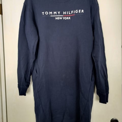 Tommy Hilfigerin musta collegemekko / collegetunika. Väri hiukan haalistunut pesuissa, ei kuitenkaan niin paljon kuin kuvissa (vääristynyt väri). Koko on 164 cm, menee S/pieni M-kokoiselle. Kai-kai- ja olka-helma - mitat kuvissa.