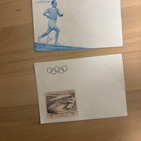 kuvan postimerkkivihko V3 olympialaisten 1952 juhlaksi ja urheiluaiheena julkaistu.